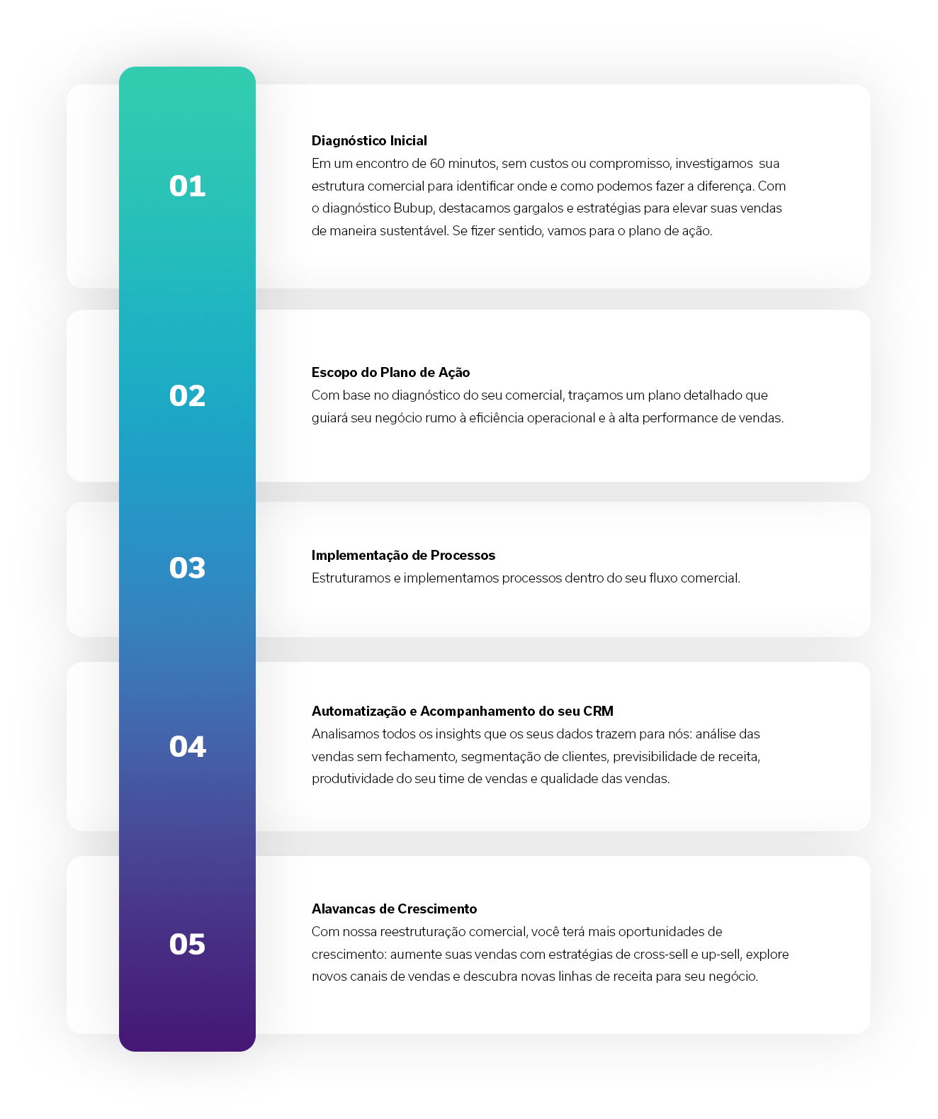 Com base no diagnóstico do seu comercial, traçamos um plano detalhado que guiará seu negócio rumo à eficiência operacional e à alta performance de vendas.